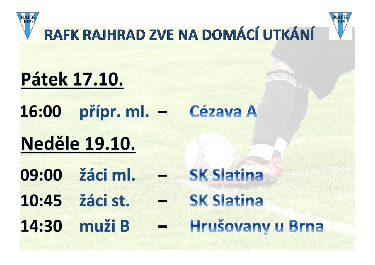 Velké poděkování patří Městu Rajhrad, které nás dlouhodobě podporuje. V jarních měsících nám poskytlo finanční prostředky na kompletní rekonstrukci hrací plochy na Rafce, díky čemuž se po jarní odmlce může vrátit fotbal znovu do areálu RAFK. Významným přínosem v zimním období je i možnost trénovat v nové sportovní hale v Rajhradě. Zároveň se sluší poděkovat i obci Opatovice, která nám po vzájemné domluvě i nadále bude pronajímat jejich fotbalové hřiště, právě proto abychom ulevili tomu našemu přetíženému.